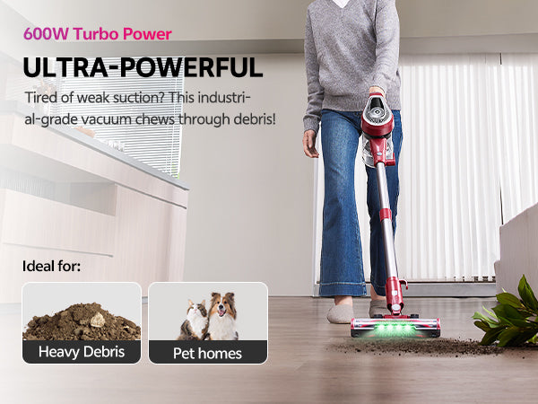• 600 W high power for pet hair