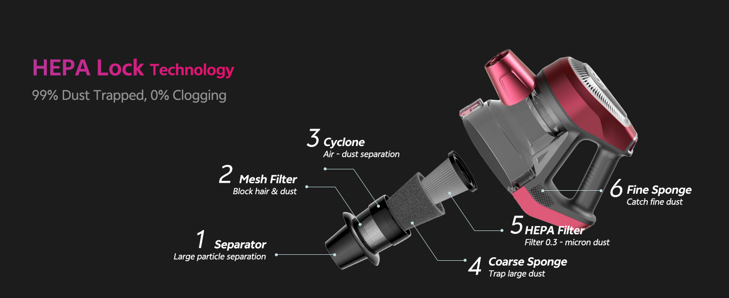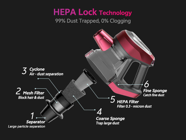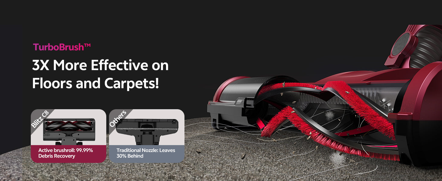 Bright LED light reveals hidden debris in dark corners. Finally achieve a spotless home by eliminating what the eye can't see.