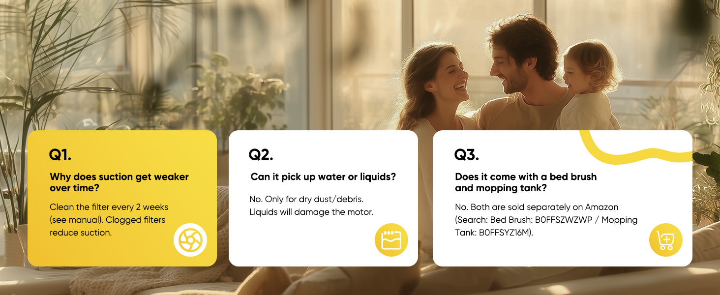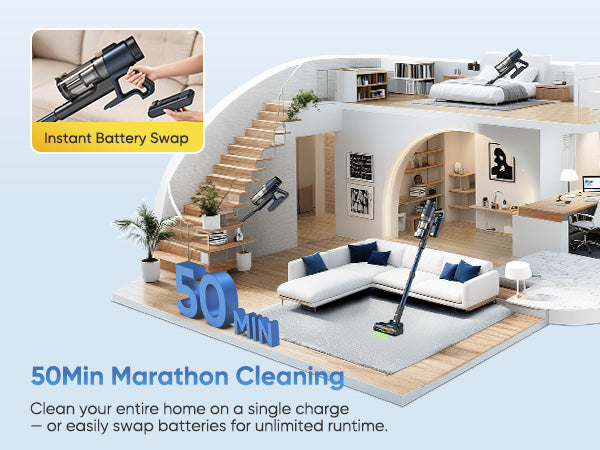 Long battery life for daily cleaning, removable battery for convenient charging.