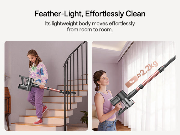 Su cuerpo liviano es muy eficaz para la limpieza de lugares elevados. Las personas mayores y los niños también pueden levantarlo con facilidad.
