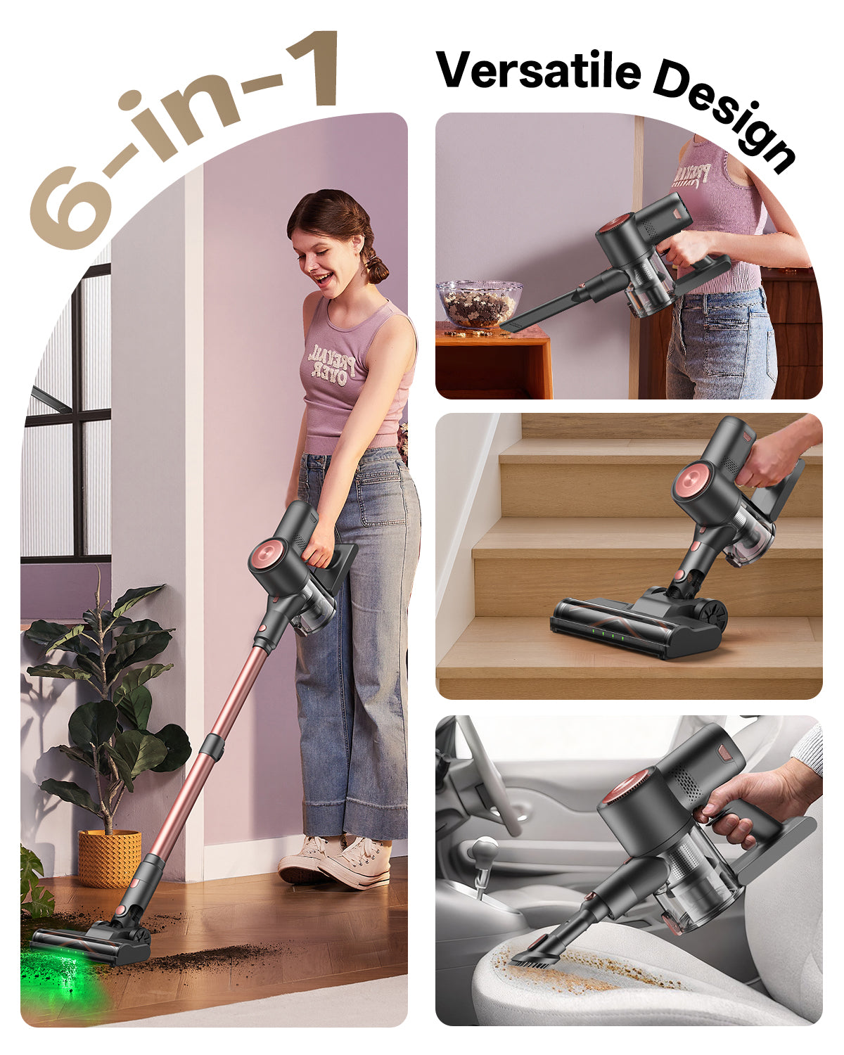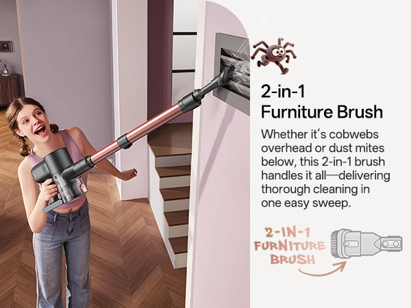 Puede realizar fácilmente las tareas de limpieza del hogar, sin perder ni siquiera la suciedad escondida en las grietas de la alfombra.
