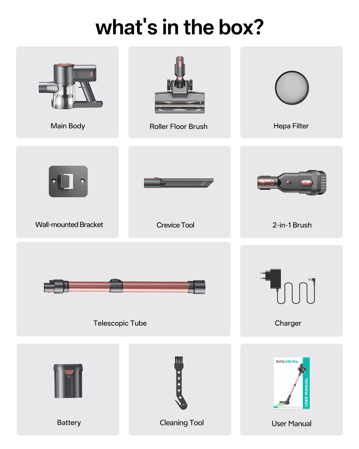 Viene con múltiples accesorios para adaptarse a una amplia gama de escenarios de limpieza.